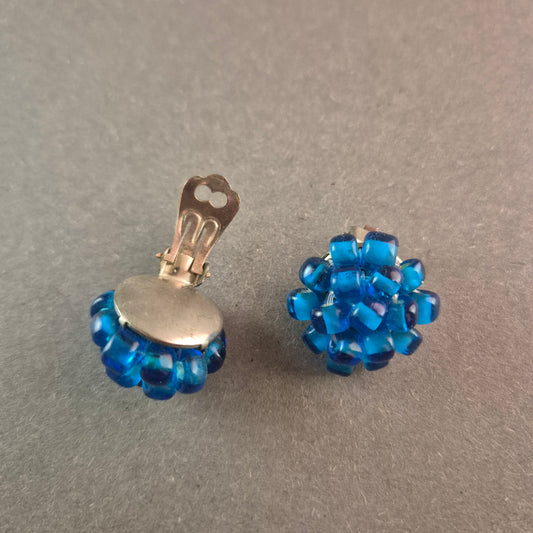 Vintage Clip-Ohrringe mit blauen Glasperlen – Stilvolle Retro-Ästhetik