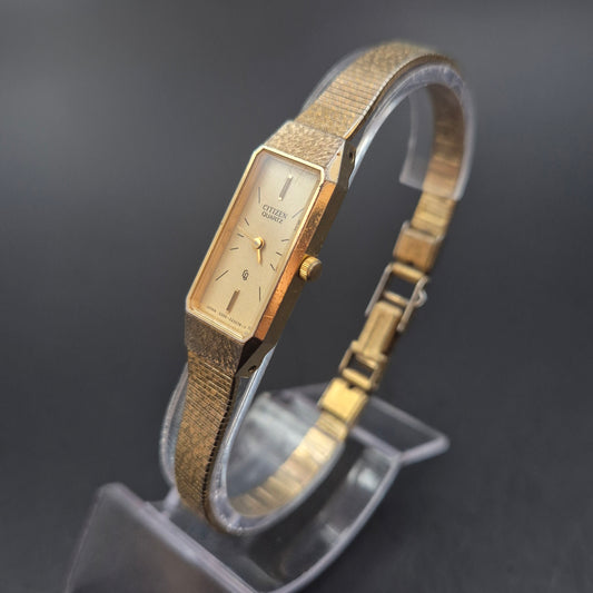 Vintage Citizen Damen Uhr – Elegantes Goldton, Rechteckiges Design