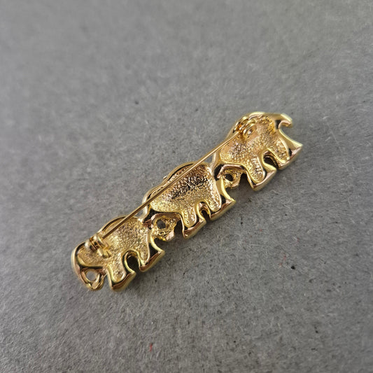 Vintage Elefanten Brosche – Glücksbringer Goldfarben & Strass