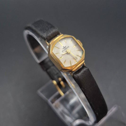 Vintage Dugena Damen Uhr – Elegantes Goldgehäuse mit Lederarmband