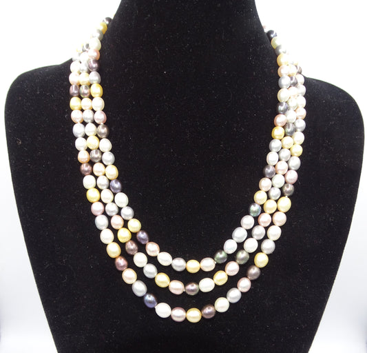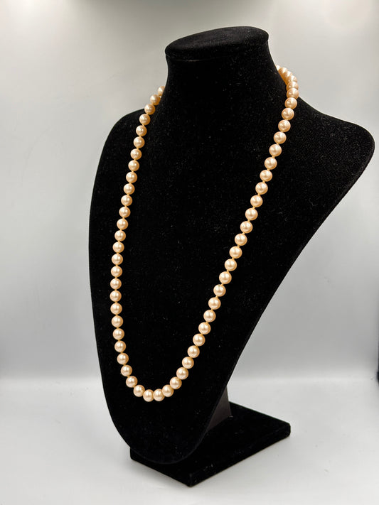 Vintage Echte Perlenkette mit Dreifach-925-Silberverschluss