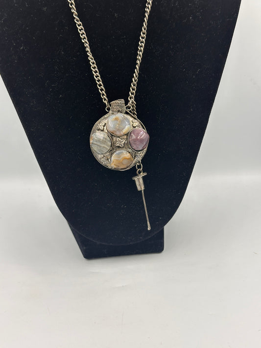 Vintage Edelstahl Halskette mit Parfümflaschen Anhänger