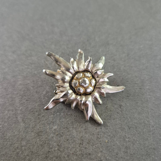 Vintage Edelweiss Brosche – Silberfarben mit Goldakzent