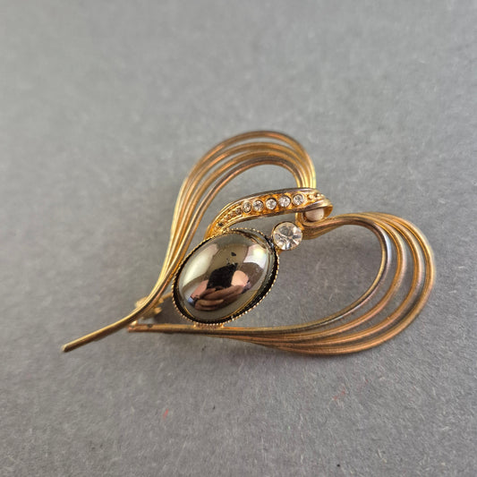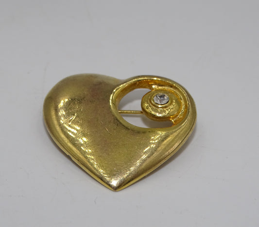 Vintage Herz Brosche goldfarben mit Zirkonium
