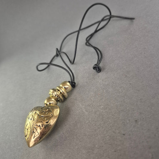 Vintage Herzanhänger aus Messing – Romantischer Boho-Look mit Lederband