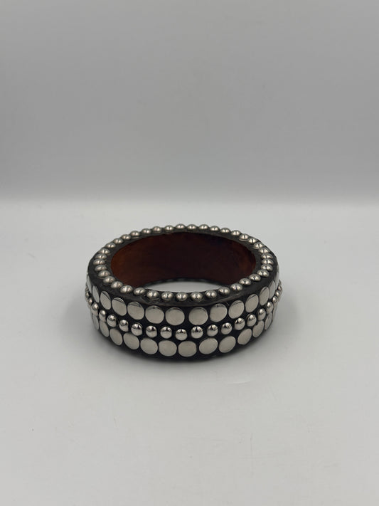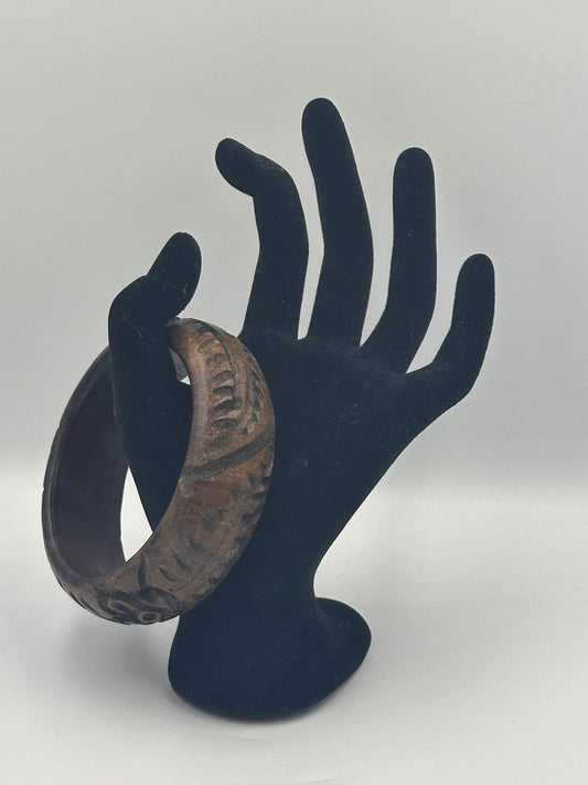 Vintage Holz Armreif mit Handgeschnitzten Motiven