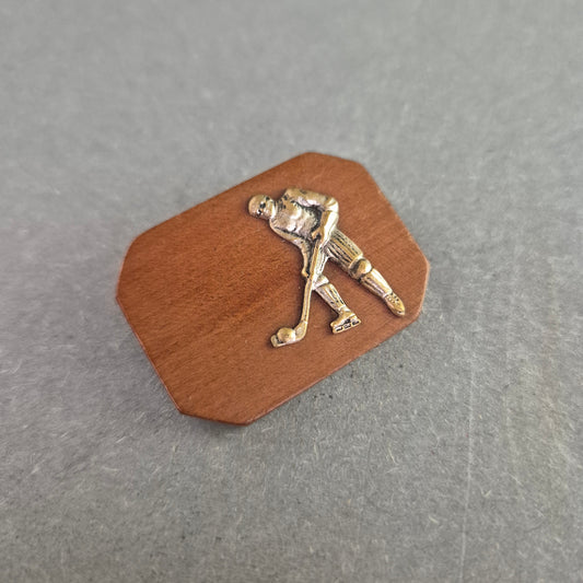 Vintage Hockey-Brosche aus Holz – Sportliches Retro-Accessoire