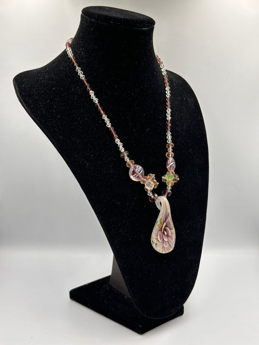 Vintage Kristallperlen Kette mit Blumenanhänger