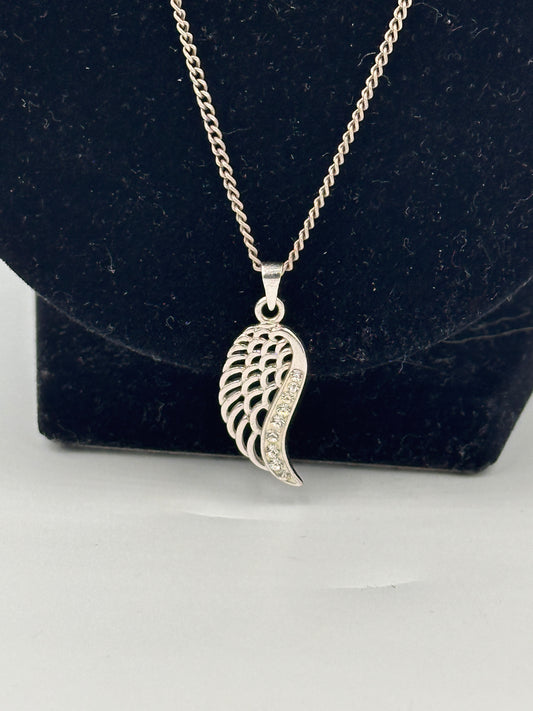 Vintage Lange Echte Silberkette mit Silber Blatt Anhänger und Zirkonia Steinen
