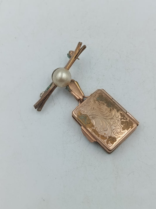 Vintage Medaillon Anhänger mit Perlendetail und Gravur