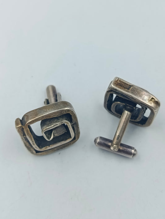 Vintage Manschettenknöpfe aus Silber – Geometrisches Mid-Century Design