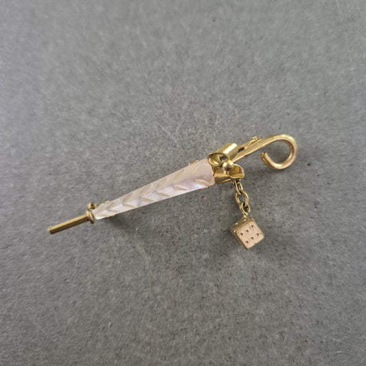 Vintage Regenschirm Brosche m. Würfel – Goldfarben & Charmant
