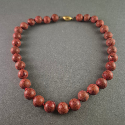 Vintage Rhodonit-Perlenkette – Natürliche Schönheit mit warmen Rottönen