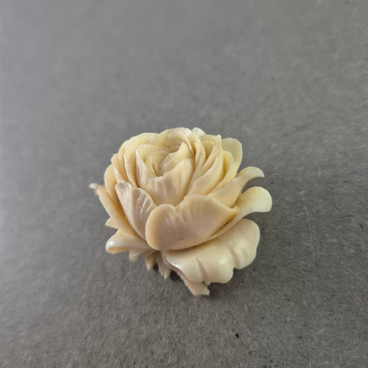 Vintage Rosen Brosche – Geschnitztes Material Elfenbein-Look
