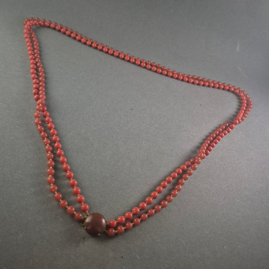 Vintage Rotkorallen-Kette – Zweireihiges Design mit klassischem Verschluss