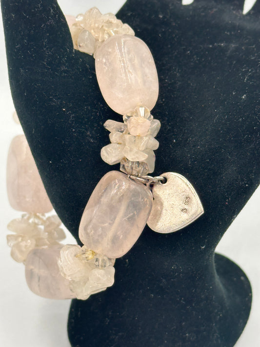 Vintage Rosenquarz Armband mit 925 Silber Herz Anhänger