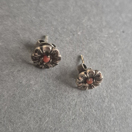Vintage Silber Ohrstecker mit Koralle – Florales Design in Handarbeit