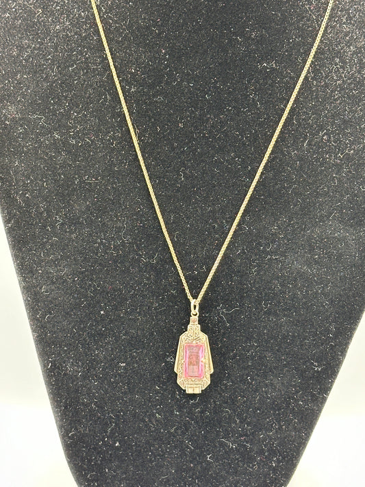 Vintage Silber Halskette mit Art Deco Anhänger und Amethyststein