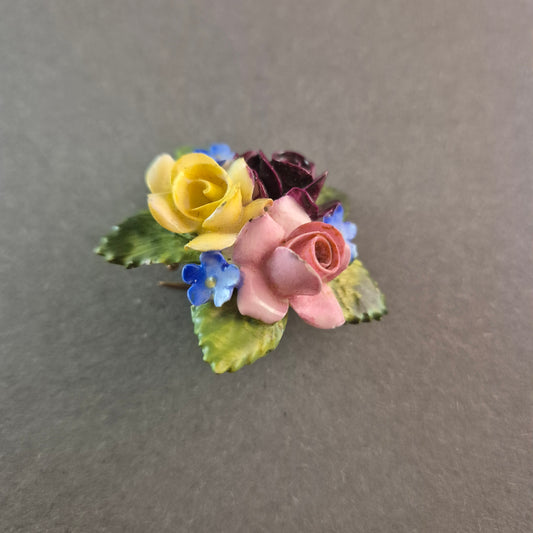 Vintage-Porzellan-Brosche mit Blumenmotiv – Made in England