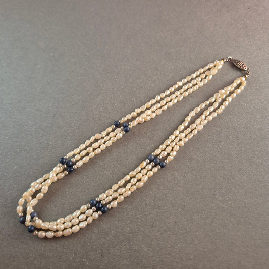 Vintage-Perlenkette mit Lapislazuli-Akzenten Klassische Schönheit