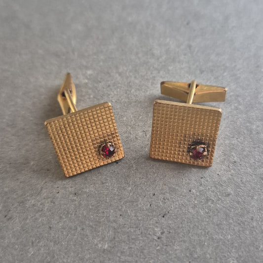 Vintage-Manschettenknöpfe vergoldet mit rotem Steinakzent
