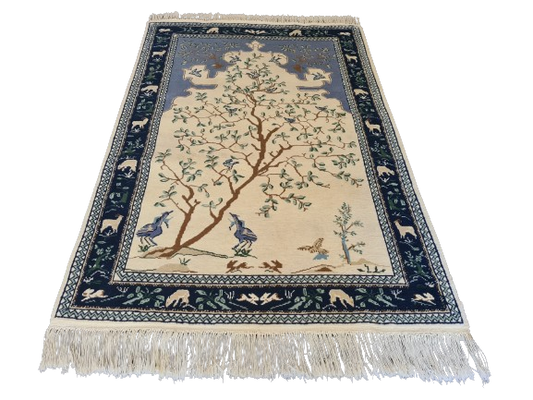 Wunderschöner Handgeknüpfter Orientteppich mit Tiermotiven 178x122cm