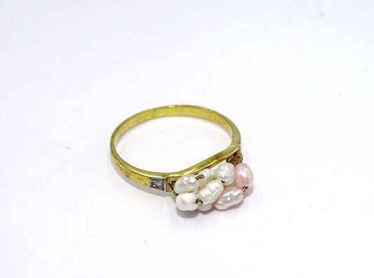 Wunderschöner 8K Goldring mit Perlen - Größe 57