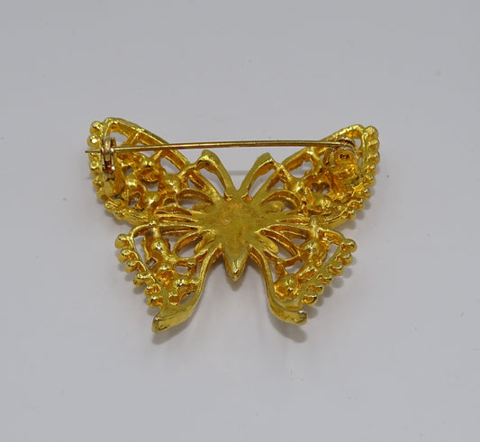 Wunderschöne Vergoldete Brosche mit Strasssteinen im Schmetterlingsdesign