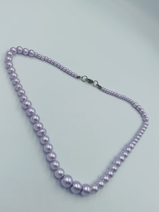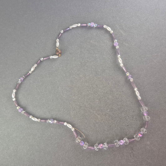 Zarte Perlenkette mit Glasperlen – Eleganter Look in Lila und Weiß