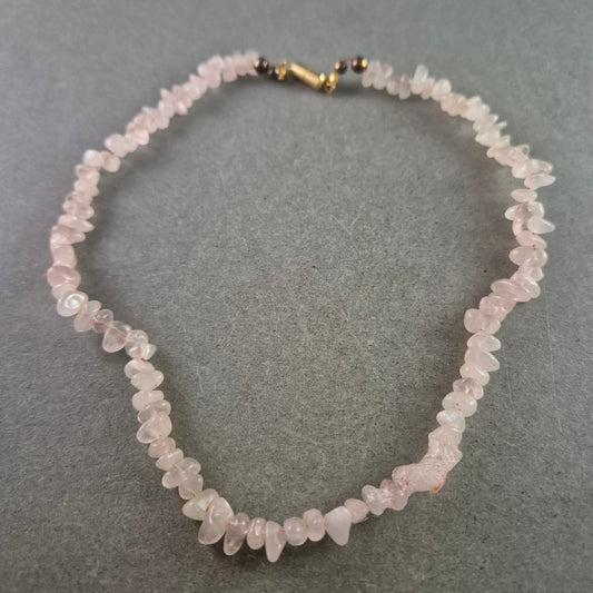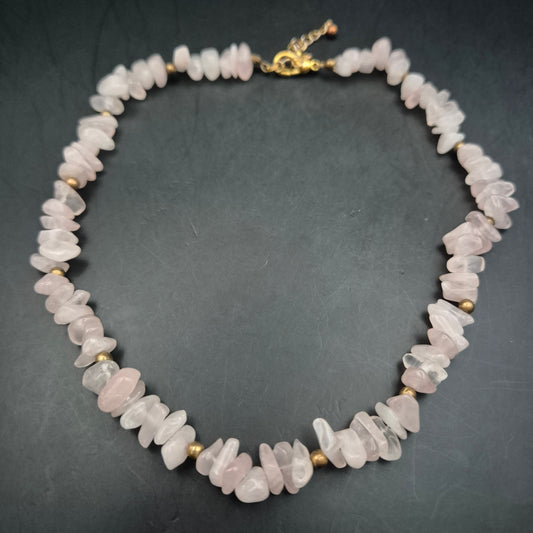 Zarte Damen Splitterkette – Echter Rosenquarz mit Gold-Akzenten