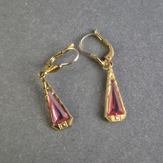Art Déco Ohrringe – Vergoldetes Design mit pinkfarbenen Steinen