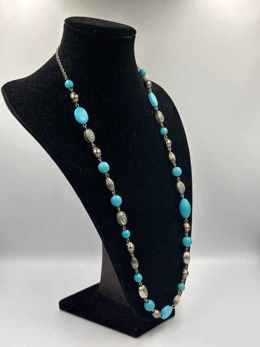 Art Deco Türkis Stein Silberfarbene Halskette