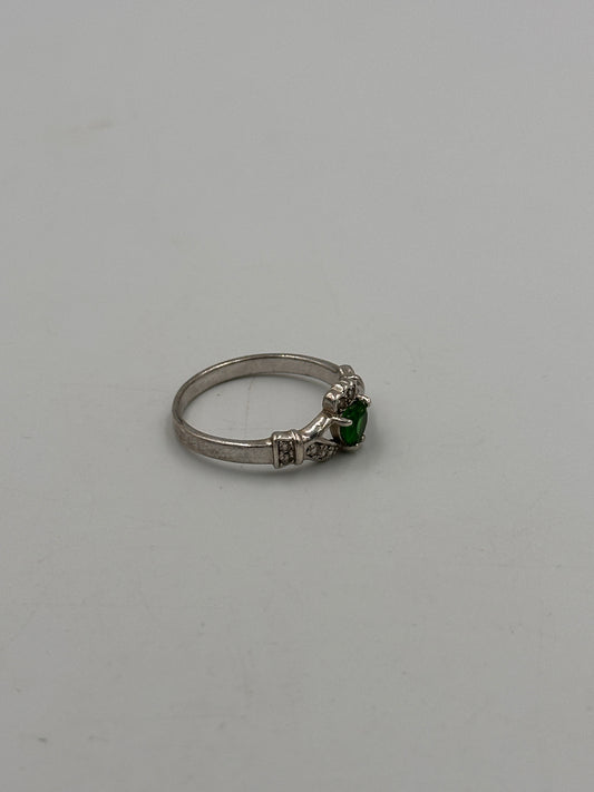 Art Deco Silber 925 Ring mit Herzförmigem Grünen Edelstein Ringgröße: 58