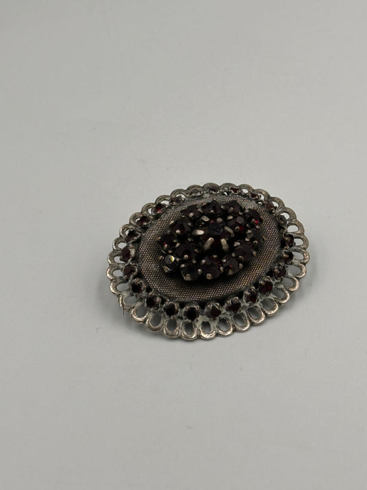 Art Deco Ovale Brosche mit Granatsteinen
