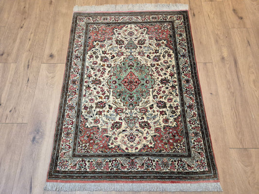 Ghom Seide auf Seide Teppich Medaillon florales Muster feine Knüpfung