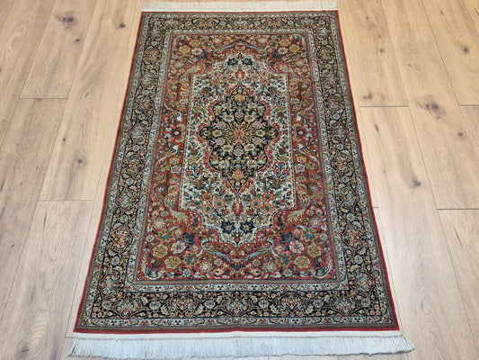 Ghom Seide auf Seide Teppich signiert florales Medaillon feine Knüpfung