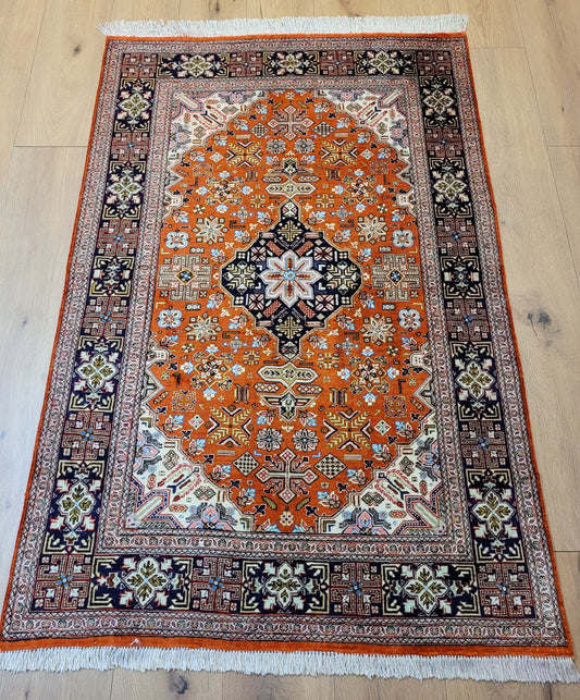 Ghom Seide auf Seide Teppich geometrisches Medaillon feine Knüpfung