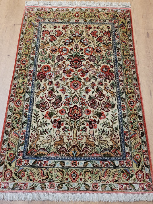 Ghom Seidenteppich Seide auf Seide Vogelmotiv feine Knüpfung