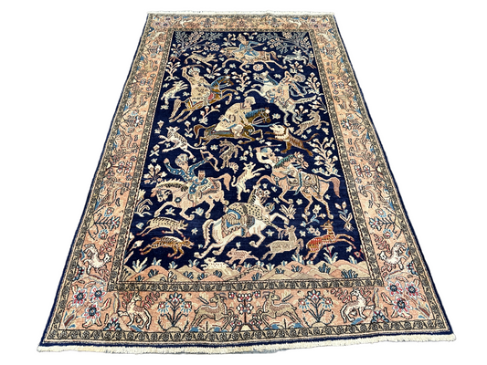 Handgeknüpfter Perser Orientteppich - Ghom Jagtmotive 212x130 cm