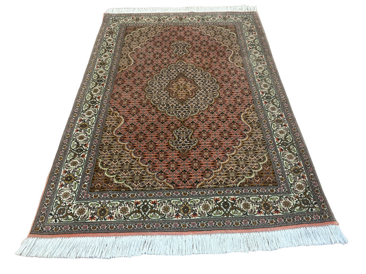 Handgeknüpfter Perser Orientteppich - Täbriz Mahi mit Seide 150x100 cm