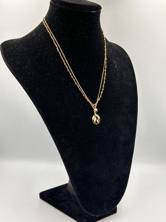 Elegante 2-Strang Halskette Vergoldet mit Globus- und Perlenanhänger