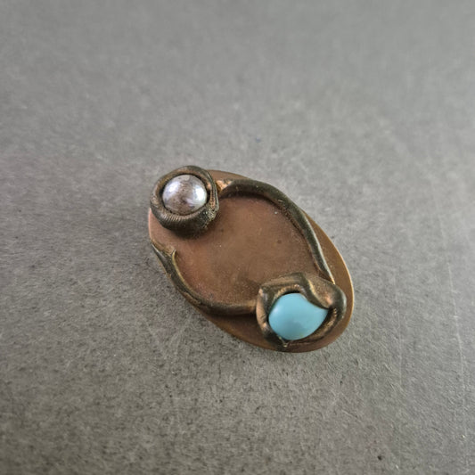 Vintage Brosche mit Türkis- und Perlenelement – Antiker Charme