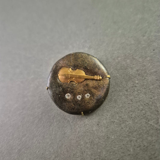 Musikalische Vintage Brosche mit Geige – Rundes Design mit Glitzersteinen