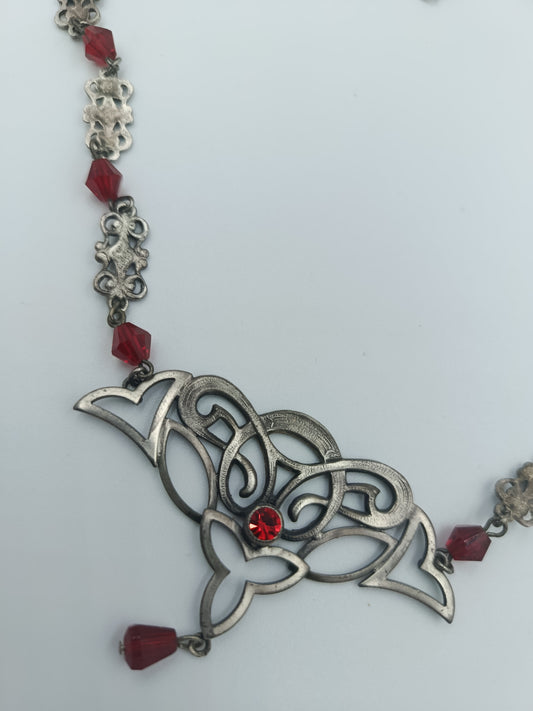 Antike Silberkette mit roten Glassteinen