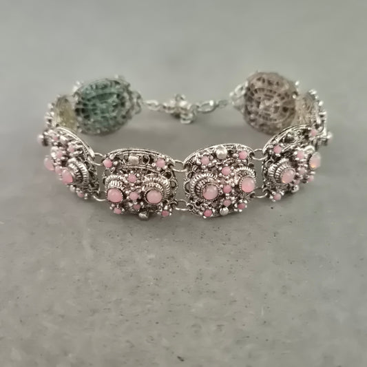 Vintage Armband Silberfarben – Bunte Steine & Ornament Design