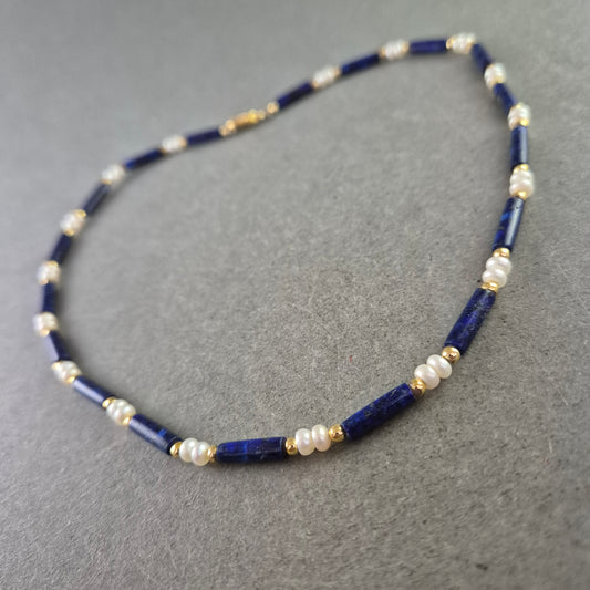 Edle Halskette mit Lapis und Perlen – Blauer Stein trifft Eleganz