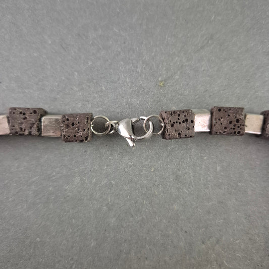 Modische Halskette mit Lava- und Metallwürfeln – Natur trifft auf Design