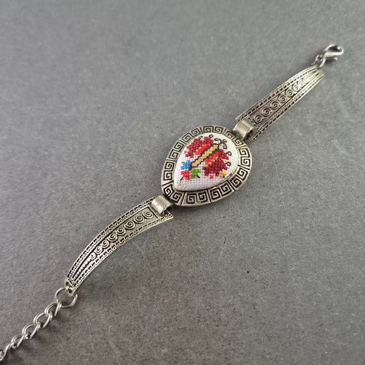 Silberfarbenes Armband mit Stickerei – Ethno-Charme & Handwerkskunst