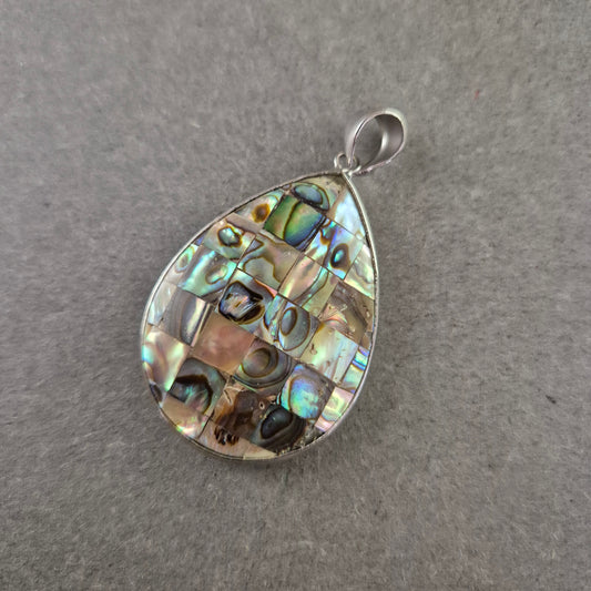 Tropfenanhänger mit Abalone-Mosaik – Schillernde Muscheleleganz