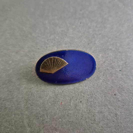 Vintage Brosche mit Fächer-Motiv – Kobaltblaues Emaille-Design